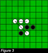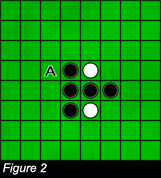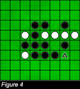 4 The number of flipped chips in one turn is only limited by the size of the gameboard. If in figure 4, white decides to place his/her chip in square A, the result will be that of figure 5.