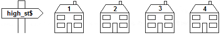 5. Houses in a street share the same street name but each has its own number.